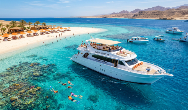Your private or small-group experience ensures comfort, personalized service, and priority access to the best snorkeling spots. Swim with colorful fish, discover diverse marine life, and sunbathe on the white sandy beaches of Giftun Island. Whether you are a snorkeler, photographer, or simply seeking a luxury day on the Red Sea, this tour promises a perfect balance of adventure and relaxation.