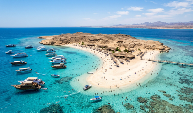 Experience the crystal-clear waters of the Red Sea on a boat trip to Orange Bay and Giftun Island in Hurghada. This full-day adventure combines relaxing beach time, snorkeling among vibrant coral reefs, and exploring pristine islands, offering an unforgettable tropical escape.