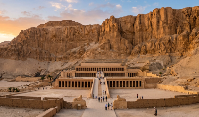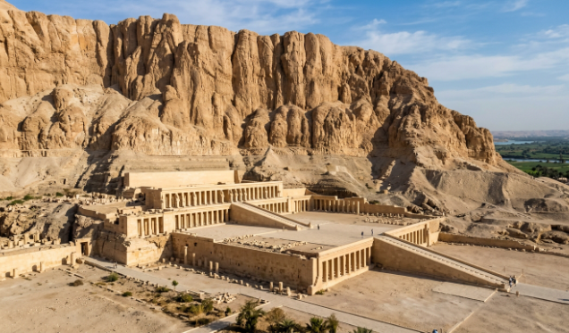 Next, visit the spectacular Temple of Hatshepsut, one of the most beautiful temples in Egypt. Built in honor of the famous female pharaoh Hatshepsut, the temple rises dramatically against towering limestone cliffs and features impressive terraces and columns.